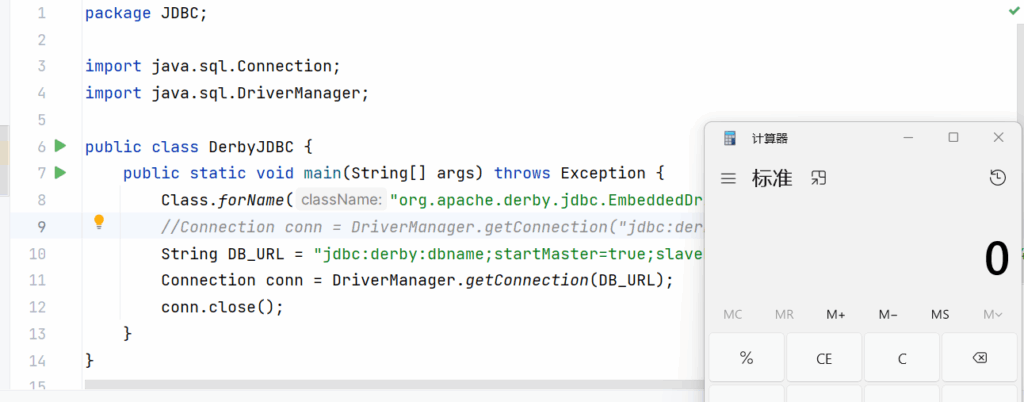 //Connection conn = DriverManager.getConnection("jdbc:derby:dbname;create=true");
