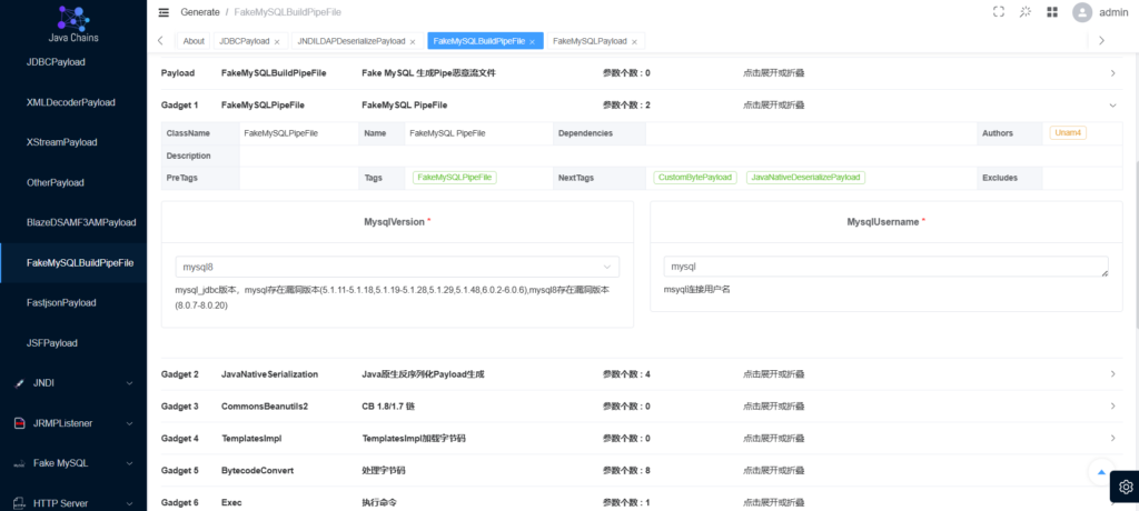 java-chains能够生成fuzz payload,一键测试常规利用链,通过查看dnslog记录,生成可利用的链。官方文档也提到过,非常详细。
